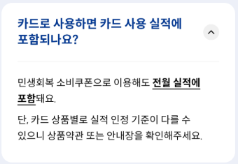 또 카드로 사용하면 카드혜택을 받을 수 있는지, 카드실적이 가능한지, 소비쿠폰 사용방법은