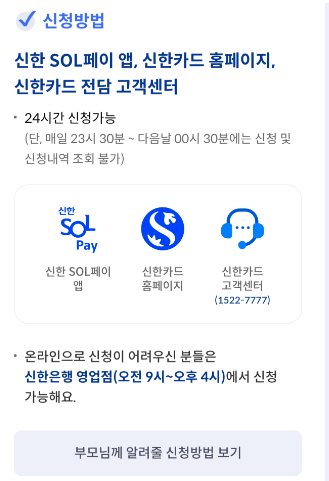 그래서 저도 주거래 은행인 신한에서 신청을 완료 했습니다.