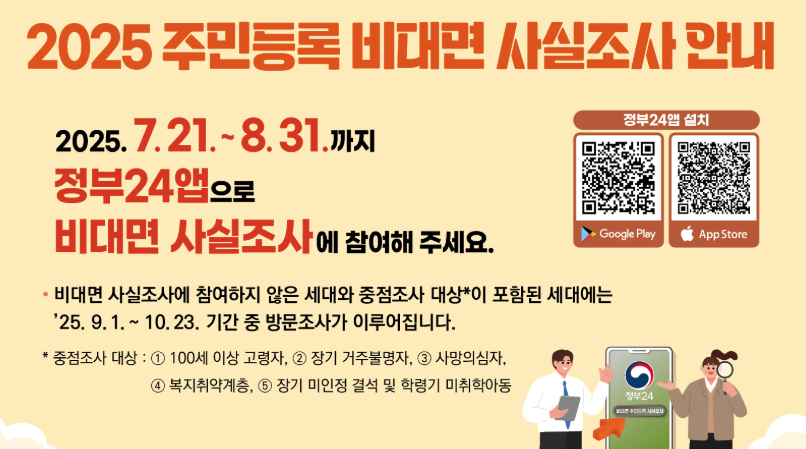 행정안전부와 전국 시군구에서 매년 실시하고 있는 2025년 주민등록 사실조사.